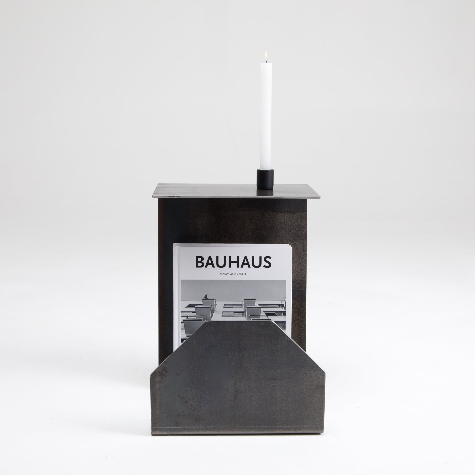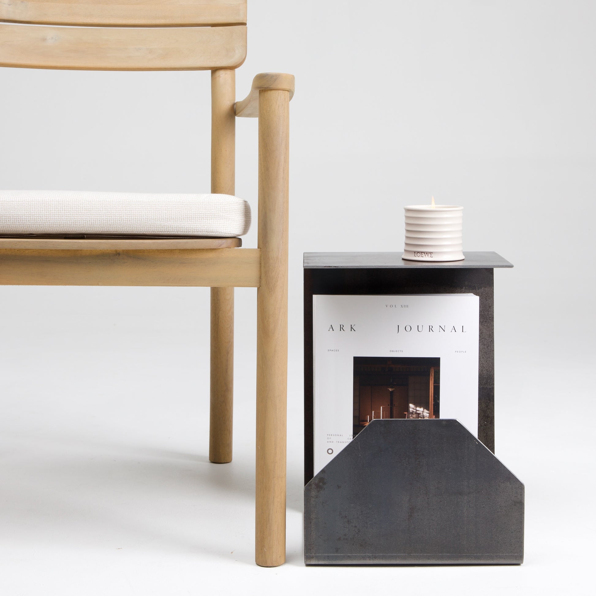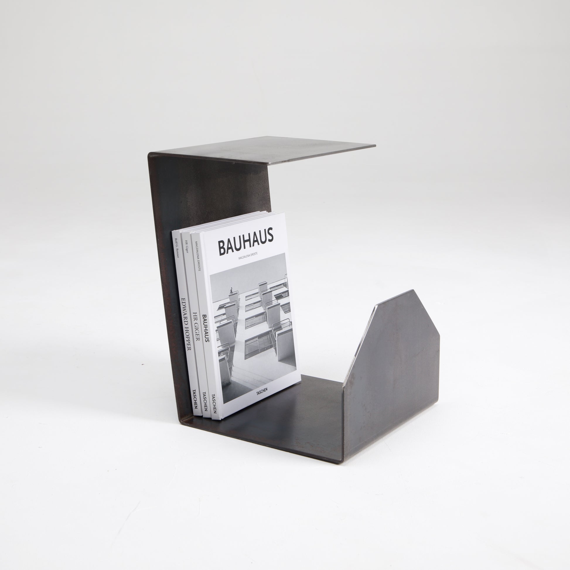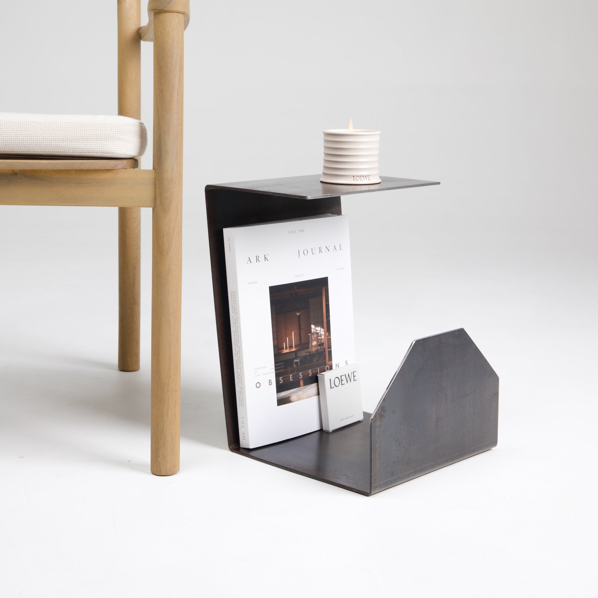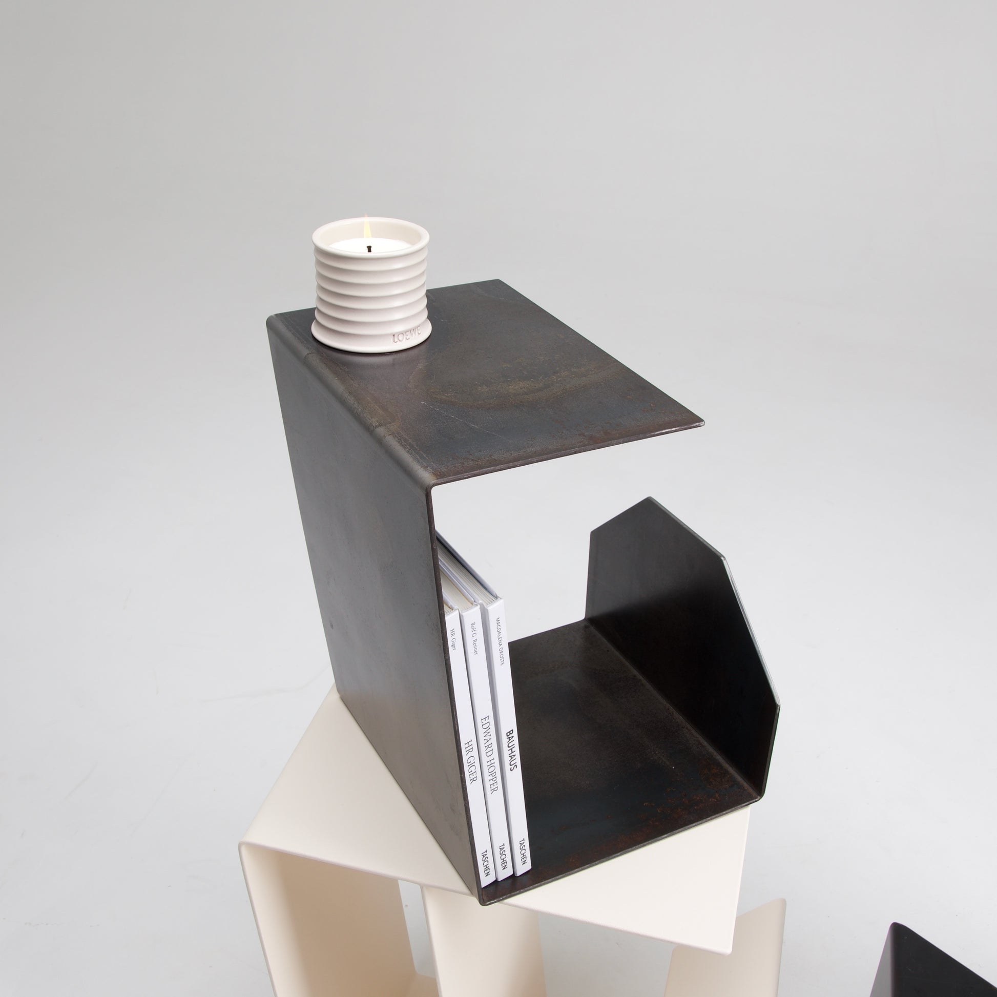 La mesa auxiliar Sacañet es un complemento único para cualquier espacio. En ella caben sin esfuerzo bebidas, revistas, libros y velas. Su versatilidad brilla tanto en entornos residenciales como comerciales. Fabricada en acero doblado con maestría, esta mesa cumple una función práctica e infunde a su decoración un toque único de belleza y encanto deconstructivos.